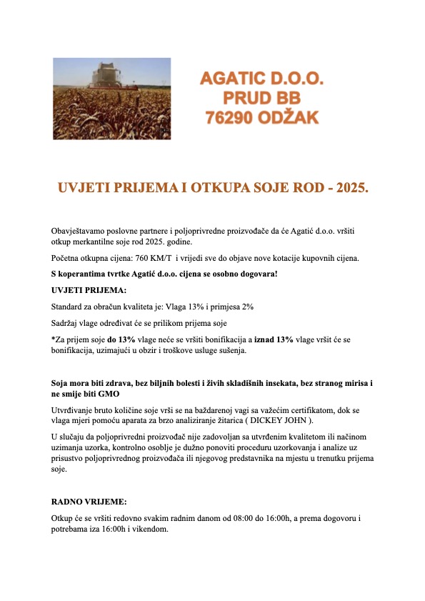 UVJETI PRIJEMA I OTKUPA SOJE ROD – 2025